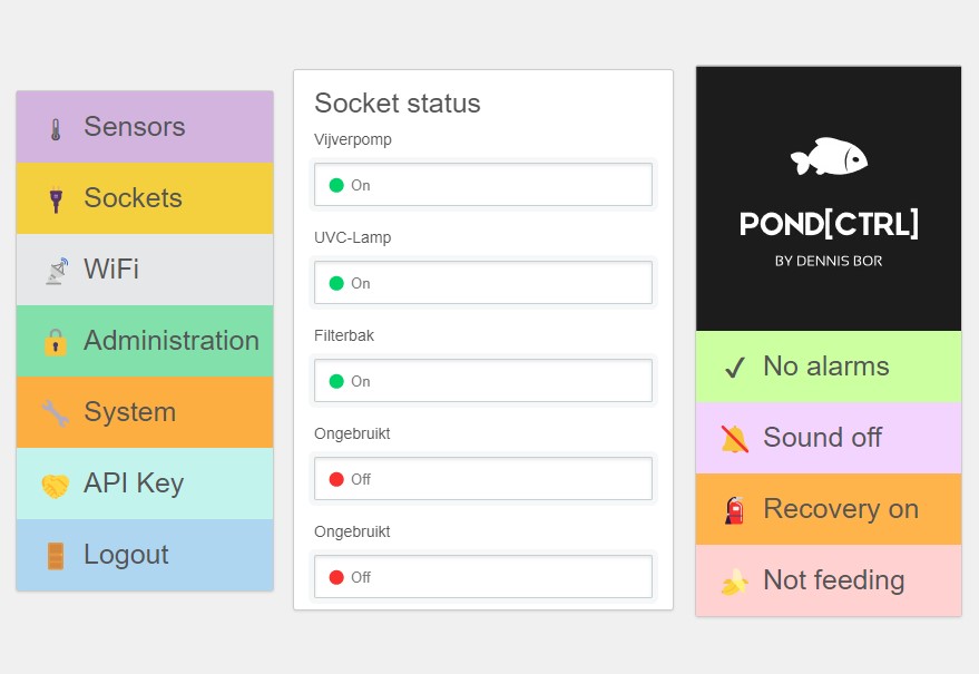 Vakantie! Eindelijk tijd om PondCTRL aan de nieuwe vijver (ondertussen al 1.5 jaar in bedrijf) te hangen. De vijver is kraakhelder, de vissen doen het goed en de waterwaarden zijn stabiel.