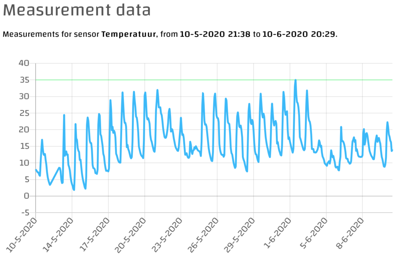 Meetwaarden zijn ook vrijwel compleet. Er wordt minder dan 1% meetwaarden niet geregistreerd (bron: database export waarbij bij dagelijks 1140 meetwaarden per sensor aanwezig moeten zijn voor een 100% score, dit bleek rondom de 1130 te liggen).