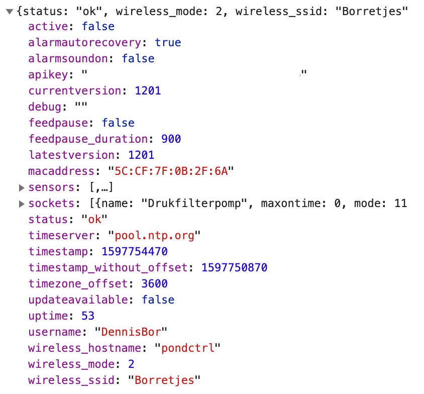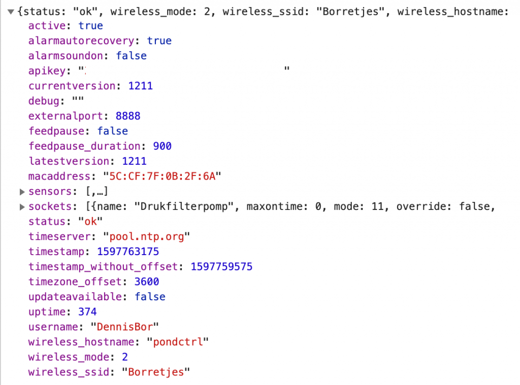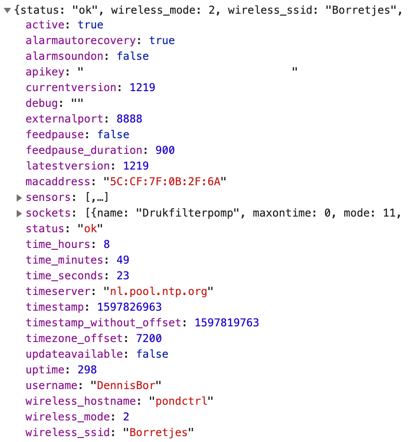 Om Pond[CTRL] met andere apparaten te laten communiceren zonder handmatig in te hoeven loggen, als voorbereiding op de gewenste HomeBridge-koppeling, ondersteunt de firmware nu autorisatie door middel van een API-key. Standaard is er geen API-key ingesteld waarmee API-autorisatie uitgeschakeld is. Zodra de key ingesteld is kunnen apparaten door middel van deze key alle functionaliteit van Pond[CTRL] bedienen.