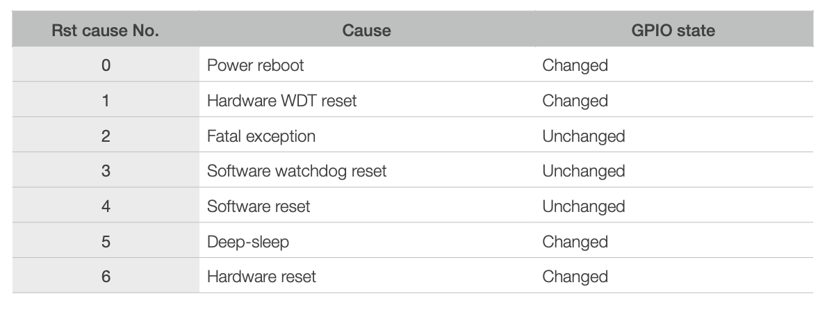 Tabel met mogelijke redenen, opgave van fabrikant WiFi-module (Espressif).